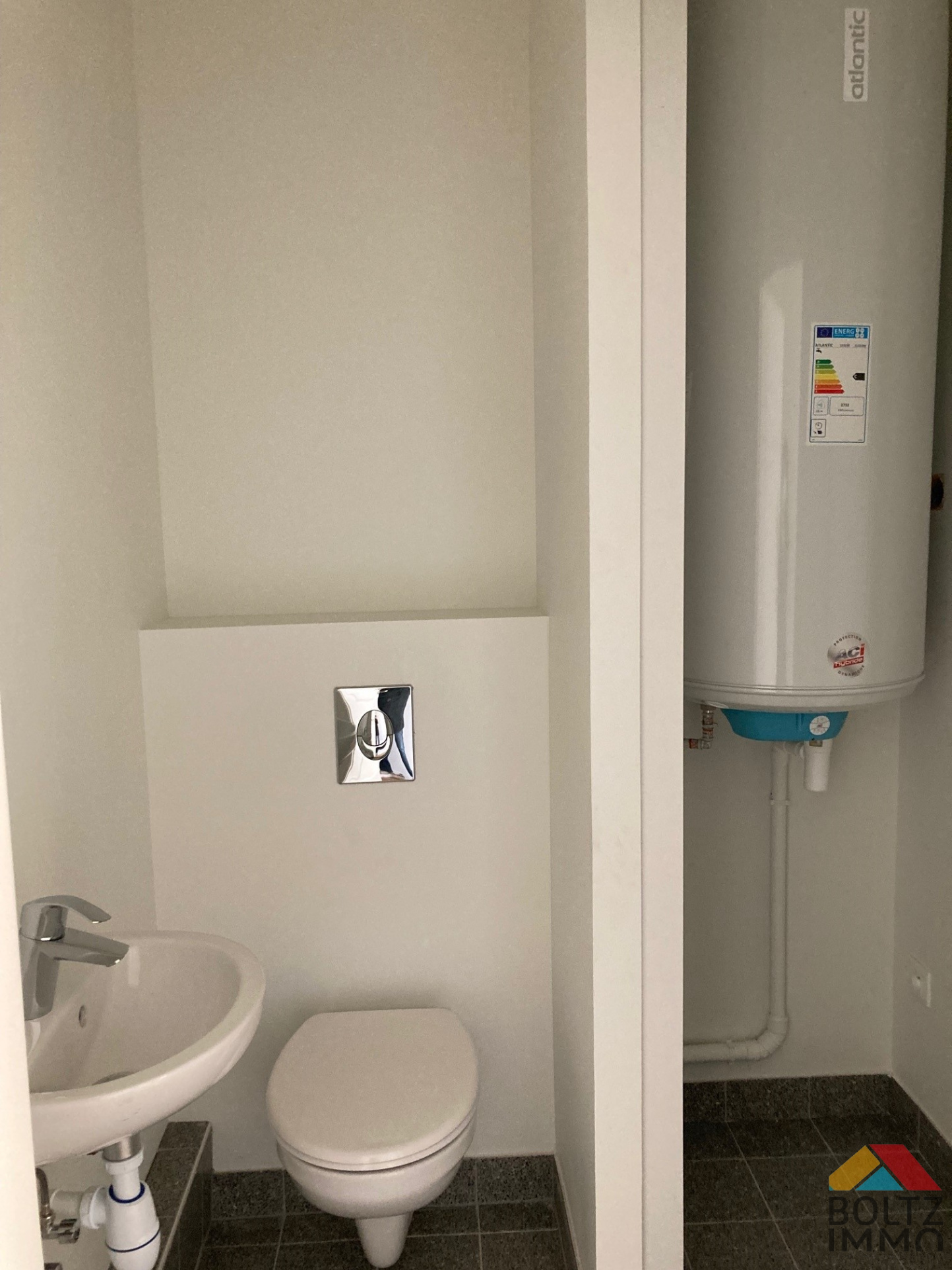 Sélestat (67600)Au centre-ville, au cœur d'un ancien couvent entièrement rénové, 3 pièces de64,04 m² au 1er étage, comprenant une entrée, une cuisine équipée (plaque, hotte) ouverte sur la pièce principale, deux chambres dont une avec placards, une salle d'eau équipée avec douche à l'italienne et wc séparé avec lave-mains.