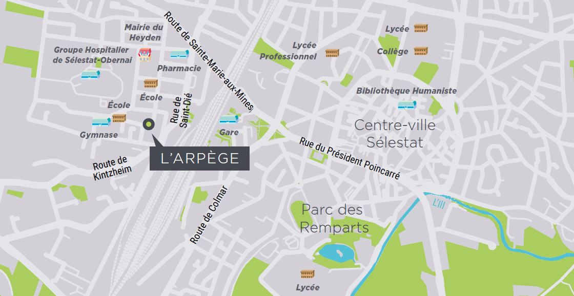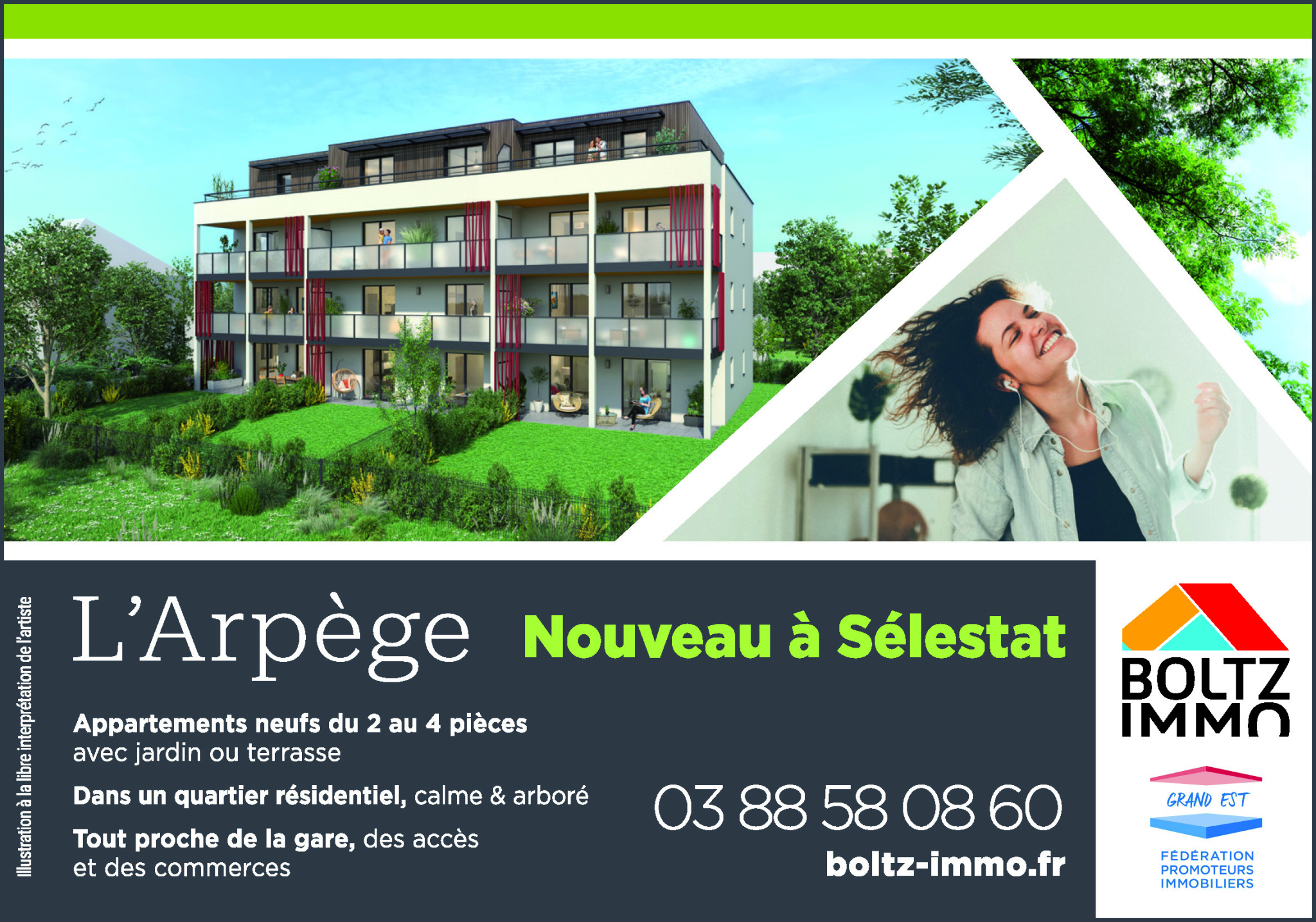 Sélestat 67600)A proximité immédiate de la gare, l'Arpège est une résidence intimiste à taille humaine de seulement 11 logements. Cette réalisation d'exception, propose des appartements de grand standing. L'Arpège prend place dans un environnement calme et aéré, un endroit idéal pour se ressourcer et à apprécier en famille. La résidence bénéficie d’un cadre de vie idéal à quelques minutes à pied du centre-ville et proche de toutes les commodités. Composée de 11 appartements, du 2 au 4 pièces s’ouvrant tous sur un jardin ou une grande terrasse, la résidence offrira confort et modernité! Des garages en sous-sol sont prévus pour chaque appartement. Pour vous c'est la certitude d'investir dans un logement éco-responsable tout en réduisant votre facture énergétique. Dernier appartement 4 pièces disponible !