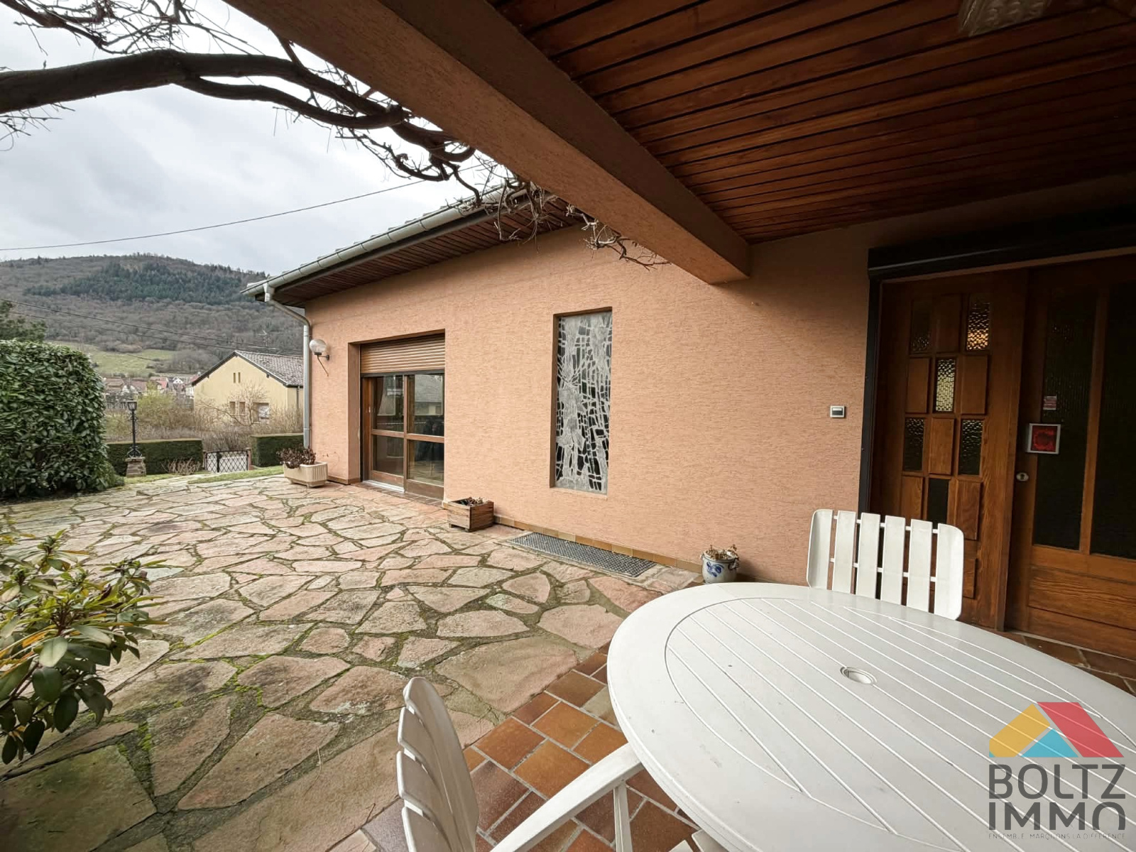 Dès l’entrée, vous serez séduit par une vaste cuisine conviviale avec accès direct à la terrasse, parfaite pour vos moments de détente. Un cellier et une buanderie viennent agréablement compléter les espaces de rangement. Le séjour lumineux dispose d’une cheminée et bénéficie de généreuses ouvertures sur une vue dégagée sur le Hahnenberg et les toîts du vieux Châtenois, créant une atmosphère chaleureuse et apaisante.